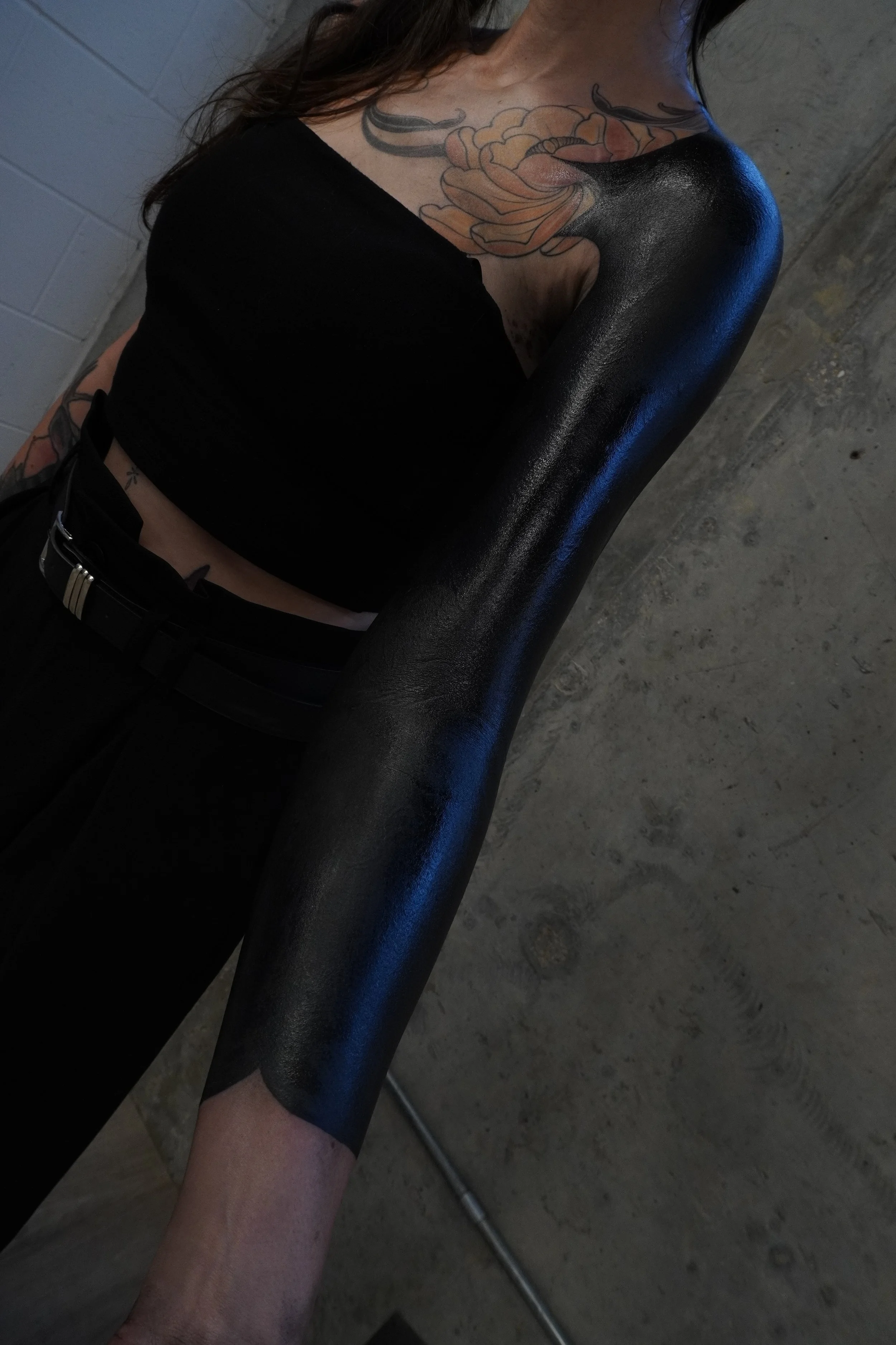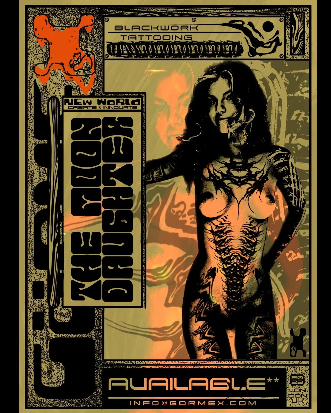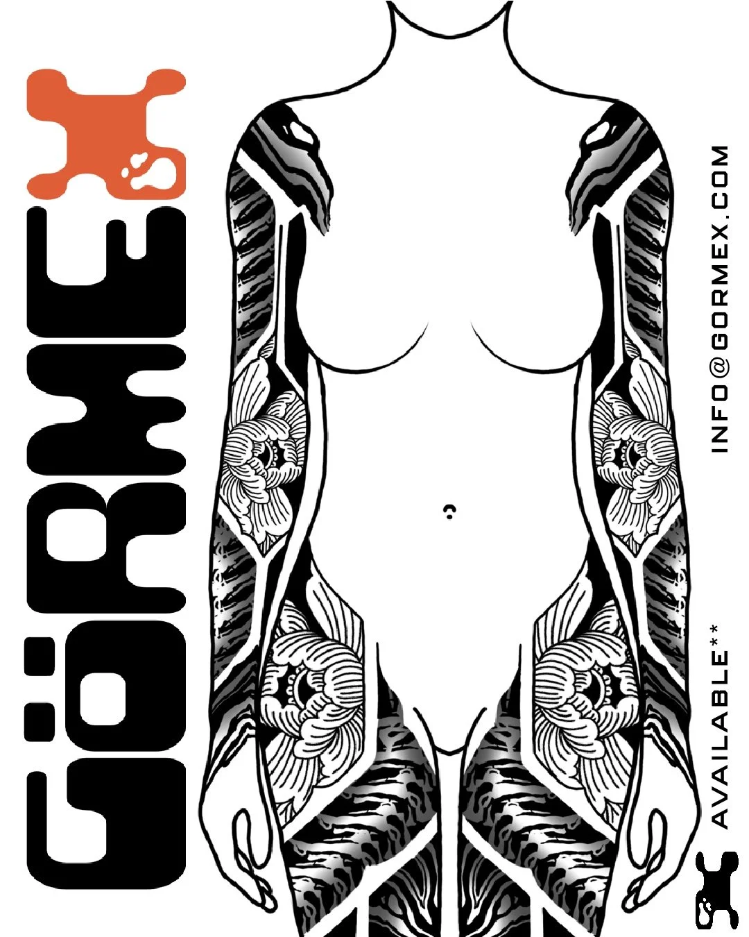 SUMMER 2025 - LONDON BODYSUIT INDUSTRIAL ABSTRACT BLACKOUT SUMINAGASHI 2ND LAYER// BLAST OVER STRAWBERRY EDITION 2025 FUTURISTIC ALIEN INDUSTRIAL HARDCORE NEO ORNAMENTAL BLACKWORK ORNAMENTAL NEO TRAD SUMINAGASHI